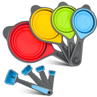 Juego de tazas y cucharas medidoras plegables de silicona plegable de grado alimenticio de 8 piezas